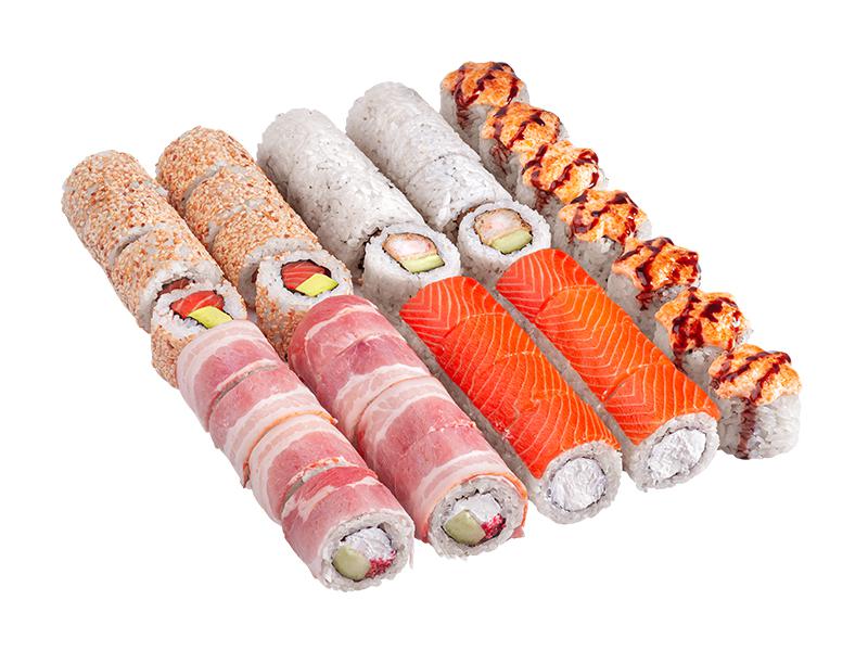 Состав: Филадельфия лайт, Филадельфия в кунжуте, Европа, Спешл ролл, Нежный куриный.