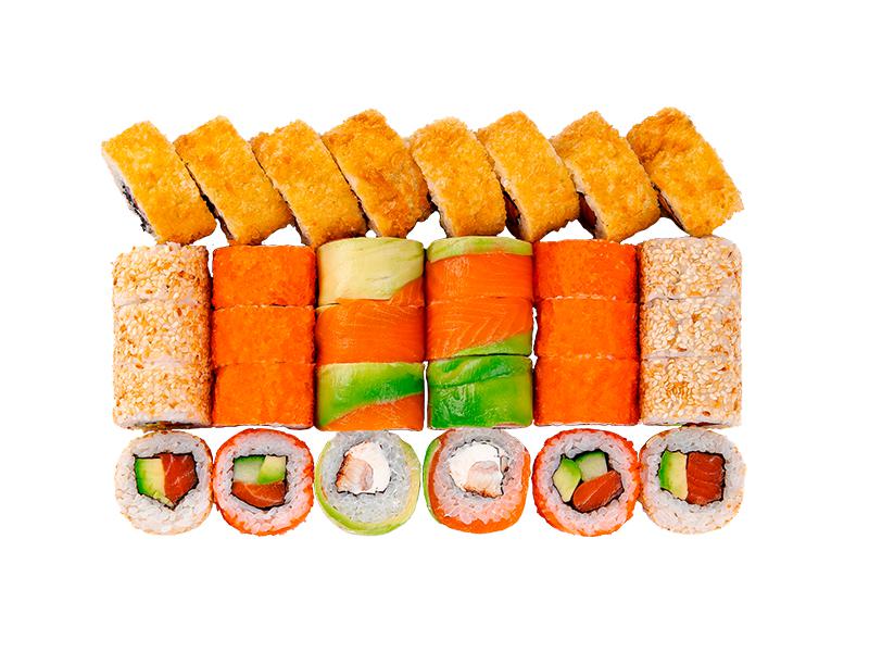 Состав: Филадельфия в кунжуте, Калифорния с лососем, Тенши маки, Дакота.